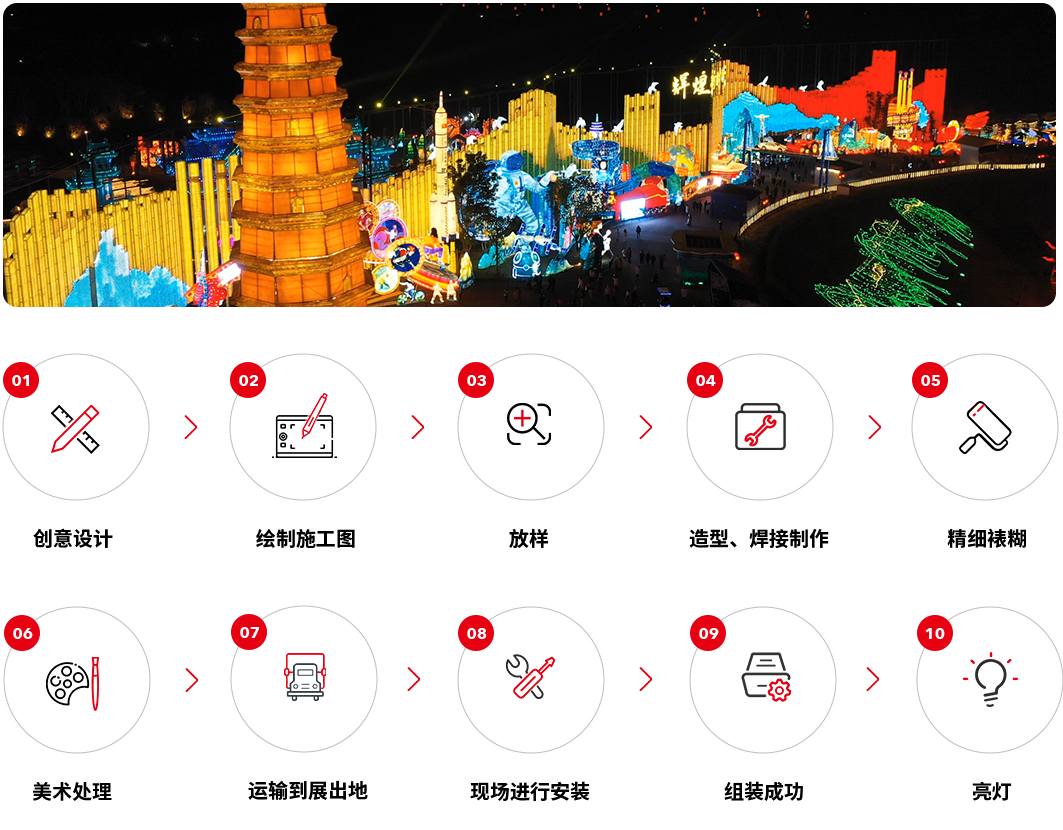 公司的專業管理團隊擁有30余年管理經驗,有成熟的燈會全產業鏈服務體系,從事包括燈會選址、彩燈設計、制作、運輸、安裝、展出、守展、銷售、運營等全產業鏈業務內容。