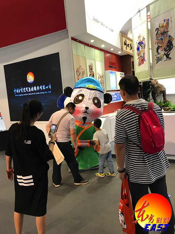 四川展區(qū)文化貿易“走出去”重點企業(yè)-自貢燈貿集團股份有限公司向客商展現(xiàn)了美國“休斯頓彩燈夢幻嘉年華”、“菲尼克斯東方彩燈——點亮世界”、“第49屆成都國際熊貓燈會”的大氣恢弘、美輪美奐。造型逼真,憨態(tài)可掬的燈會吉祥物“嘟嘟”更是成為展區(qū)亮點。