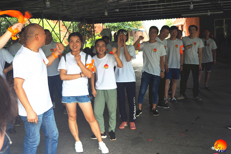 拓展訓練前的“破冰”,對各部門和團隊提出不同的挑戰——是保持對部門的“擁護”,還是對“重組”團隊的不屑呢?全體員工分成四隊,在各隊名譽隊長的引導下,各隊相繼系上表示不同意義顏色的彩帶。從隊長、隊名、隊呼的確立,到震徹山谷的莊嚴營訓,各隊團隊力量不斷彰顯。