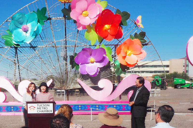 璀璨絢麗、獨具神韻的“2018世界之光圖森彩燈嘉年華”于11月7日在美國西部城市圖森華彩綻放。燈展受到當地政府和社會各界的廣泛關注。Pima郡行政長官、圖森市常務副市長、市議會議員、郡商會會長、市大都會商會董事長、市旅游局局長、市交通局局長等美方官員出席開幕式。