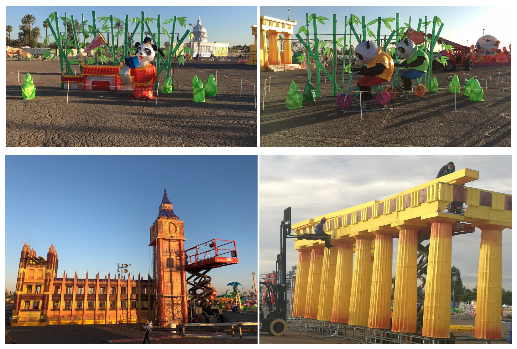 藍天白云、晴空朗朗,技藝高超的工匠師傅正將燈組配件完美的安裝到預定位置。每個人都在盡最大努力,希望用兩周后開幕的“世界之光-2018菲尼克斯彩燈嘉年華”,為菲尼克斯及世界人民送上來自東方的圣誕祝福。