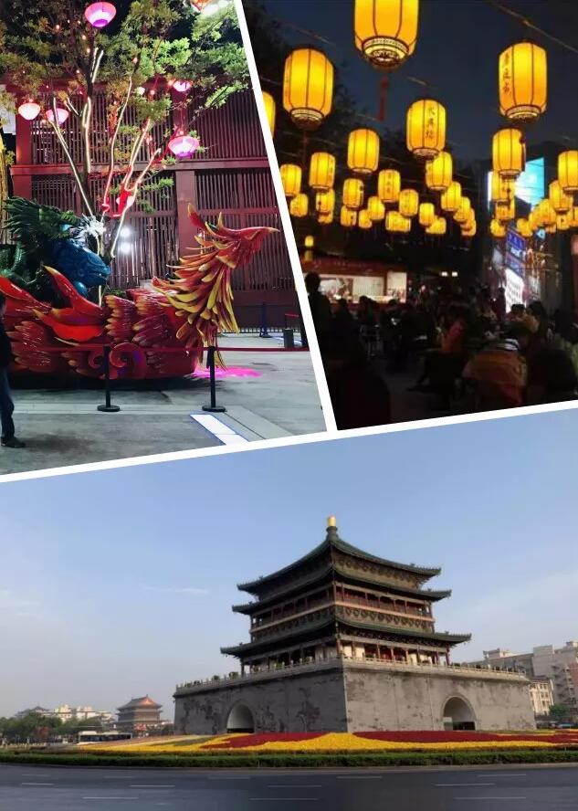 夜晚降臨,我們一行來到西安另一標志性建筑-鼓樓。它橫跨大街,和鐘樓遙相呼應。晨鐘暮鼓,雄渾莊嚴。登臨樓上,憑欄便能眺望全城景色。