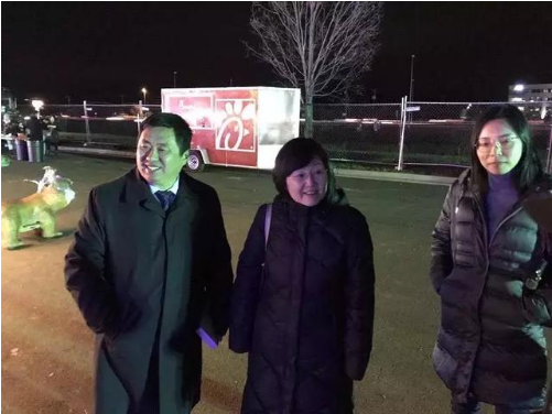 自貢燈貿集團執(zhí)行總裁陶建軍向駐美公使銜參贊李鴻介紹華盛頓燈展情況。