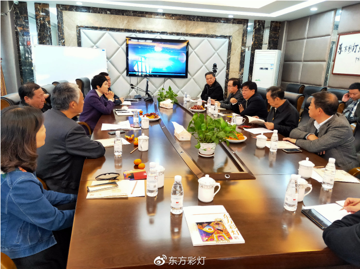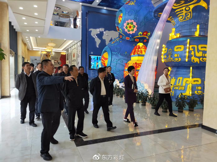 燈貿集團董事長劉婭、執行總裁陶建軍陪同考察團一行參觀了東方彩燈(出口)基地,觀摩彩燈制作過程,詳細了解了彩燈工藝流程。
