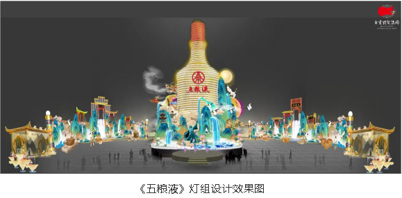 千年悠悠酒香,百年五糧精華。自貢燈貿(mào)集團(tuán)承制的大型場(chǎng)景式燈組《五糧液》,主燈采用第八代五糧液酒瓶運(yùn)用自貢彩燈傳統(tǒng)工藝?yán)υ删扌臀寮Z液,輔以仙山、仙境、巨龍騰越氛圍闡釋五糧傳奇,杯酒時(shí)光,百年味道。周邊群燈組展示封存在時(shí)光中的“活窖池”--利川永、張萬和、劉鼎興、天賜福、聽月樓、全恒昌等八家明代釀酒作坊,歷史悠久的古窖池群講述著傳承幾百年的五糧液釀酒工藝,折射幾千年氤氳酒香的中國酒歷史和酒文化。歲月悠悠,五糧芳香的故事將不停地續(xù)寫,在未來再創(chuàng)輝煌,歷久彌香,延綿不斷地傳承這千古佳釀。