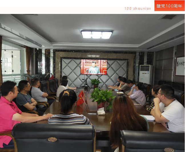 7月1日上午,喜迎中國共產黨成立100周年,燈貿集團全體員工在會議室集中觀看、學習中共中央總書記、國家主席、中央軍委主席習近平在建黨100周年慶祝大會上發表的重要講話,共同慶祝中國共產黨百年華誕。