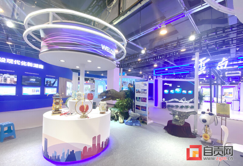 作為全國首批國家文化出口基地,自貢精心組織了18家文化貿(mào)易企業(yè),攜各具特色的彩燈、仿真恐龍、扎染等文化產(chǎn)品組團(tuán)亮相展會,讓自貢元素閃耀服貿(mào)盛會。其中燈貿(mào)集團(tuán)亮相服貿(mào)會現(xiàn)場的“縱目面具人”以三星堆博物館六大國寶之一的青銅縱目面具為設(shè)計(jì)理念,采用絲架立體造型,色丁布裱糊,表面美術(shù)處理,LED光源內(nèi)透等傳統(tǒng)彩燈技藝來呈現(xiàn)。燈貿(mào)集團(tuán)推出“三星堆室內(nèi)微縮彩燈光影藝術(shù)展”環(huán)球巡展項(xiàng)目,以“室內(nèi)微縮燈會”為載體,以三星堆文化IP為支撐,讓三星堆文化和自貢彩燈文化融合創(chuàng)新,進(jìn)而延伸中華傳統(tǒng)文化品牌的價(jià)值鏈,提升中華文化品牌國際知名度。