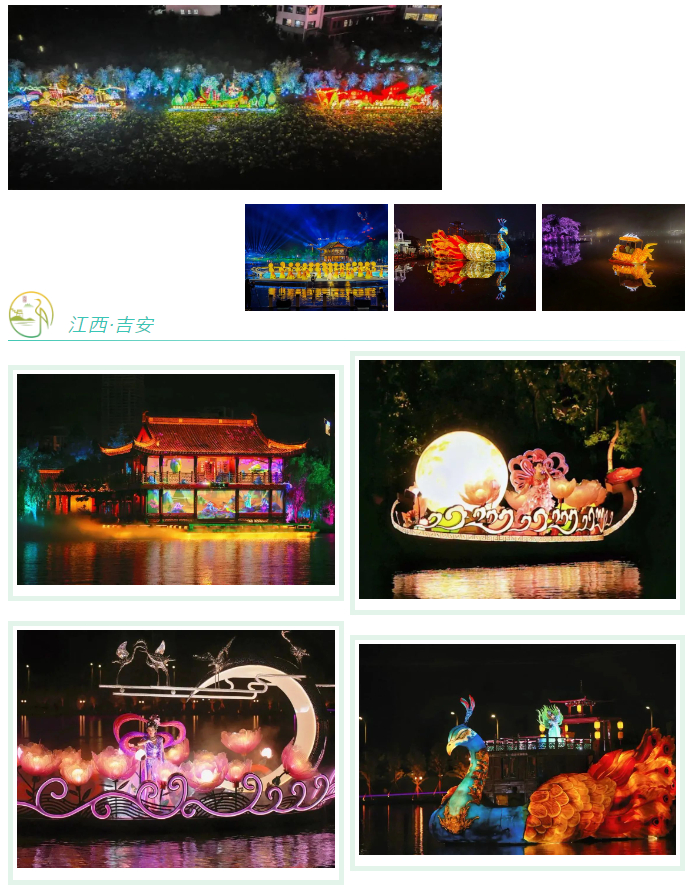 6月13日至15日,2022年江西省旅游產(chǎn)業(yè)發(fā)展大會(huì)在吉安市舉辦。自貢燈貿(mào)集團(tuán)匠心呈現(xiàn)的““后河 · 夢(mèng)回廬陵””彩燈藝術(shù)盛宴,在廬陵山水間華美鋪陳,流光溢彩。彩燈用“光”解構(gòu)時(shí)間,用“影”重塑空間,演繹廬陵厚重的文化、進(jìn)取的精神,開放的胸懷,展現(xiàn)現(xiàn)代吉安奮力建設(shè)革命老區(qū)高質(zhì)量發(fā)展先行區(qū)、全省共富共享美好生活實(shí)踐區(qū)、全國(guó)紅色基因傳承示范區(qū)的豐碩成果。